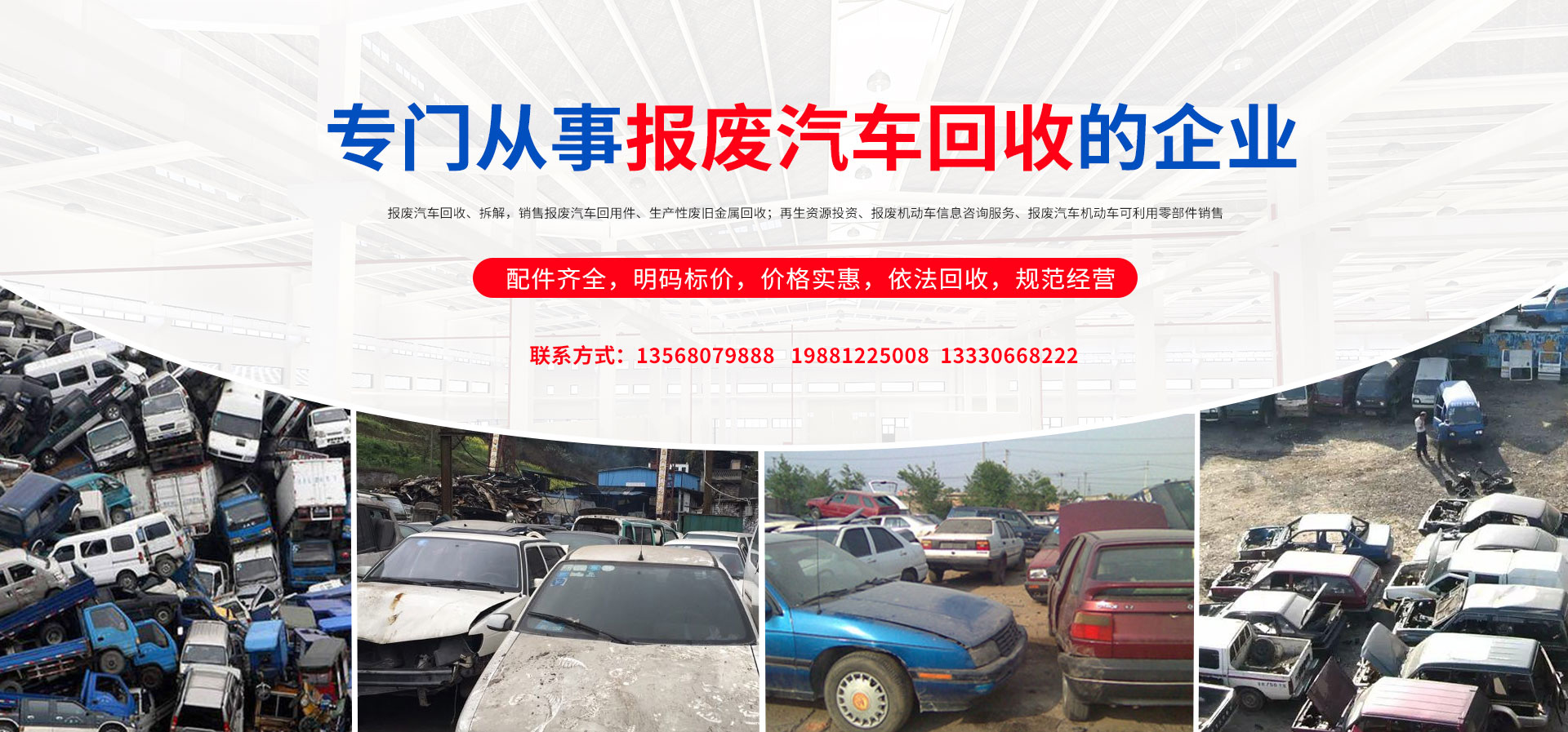 我公司在報廢汽車回收拆解中,認真貫徹執(zhí)行國家法律法規(guī),嚴格執(zhí)行國務院令第307號,積極開展行業自律,依法回收,規(guī)范經營,從源頭上控制了報廢汽車整車、拼裝車、“五大總成”等上路和重新流入市場的現象,為緩解我市資源短缺,減輕環(huán)境污染,促進資源循環(huán),維護人民群眾生命財產安全和道路交通安全起到了巨大的作用。